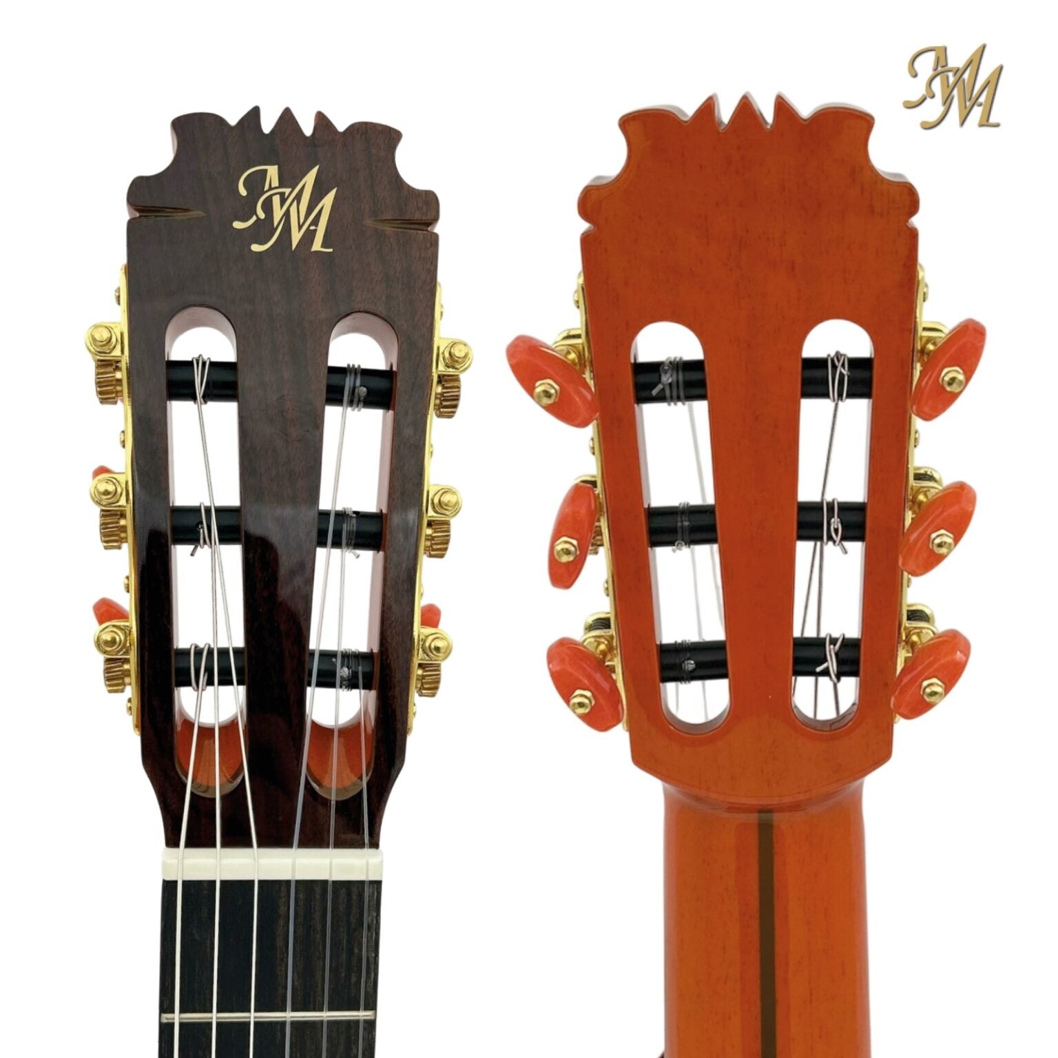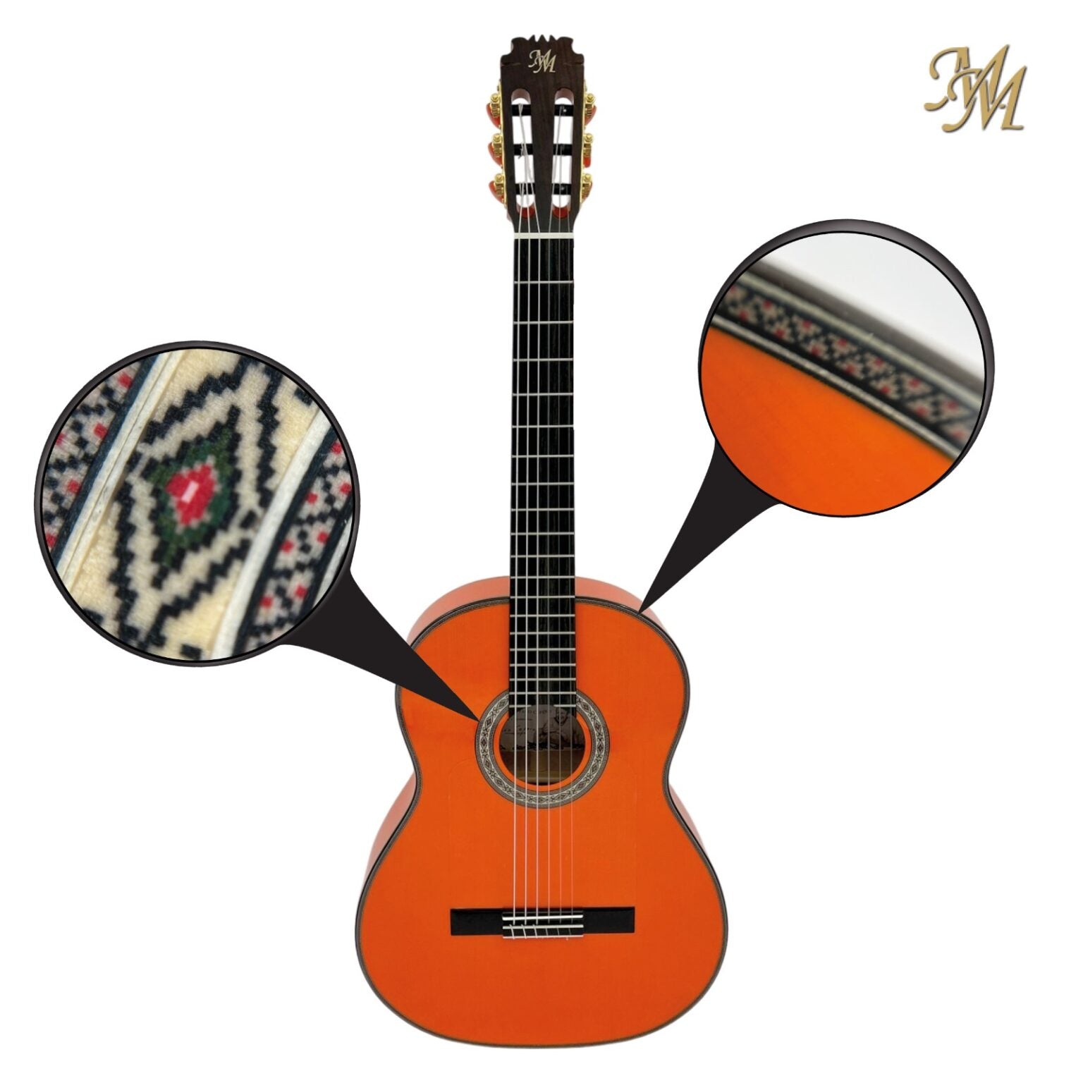 Inspirada en la elegancia y claridad del toque del maestro “Paco Cepero”, esta guitarra de lujo está construida con fondo y aros de arce rizado y tapa de pino abeto alemán maciza de 1a, que ofrece un sonido flamenco brillante y limpio. Perfecta para los que buscan un tono claro y definido, con una estética deslumbrante.